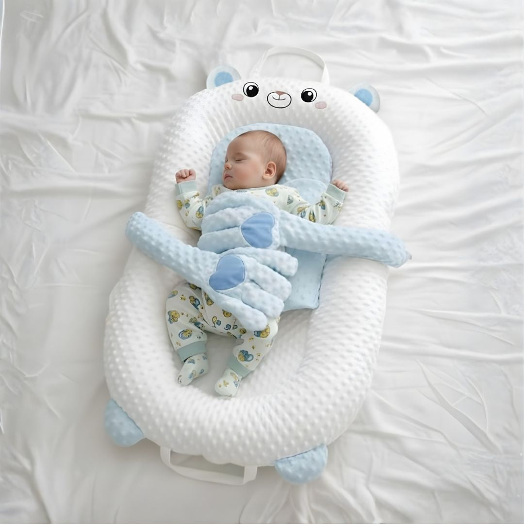 Lullabed™ features a subtle incline that supports babies who experience post-feed discomfort or spit up. It is not a medical device, but many parents find the gentle elevation helps their baby rest more comfortably.