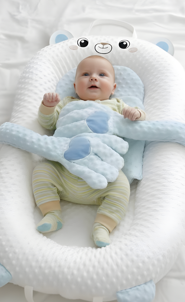 Lullabed™ is designed to help unsettled babies feel calm and supported after feeds, making it easier for them to settle and rest comfortably.