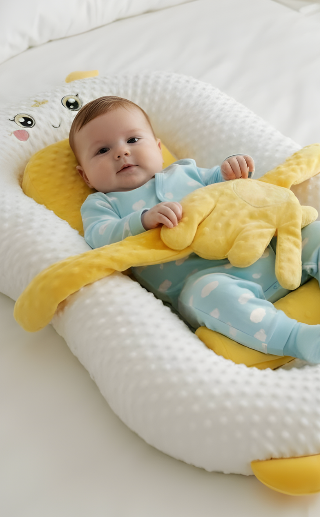 Lullabed™ can be placed on flat, stable surfaces for supervised use. It is not a replacement for a crib, bassinet, or safe sleep mattress.